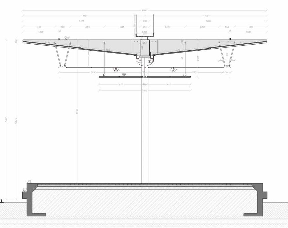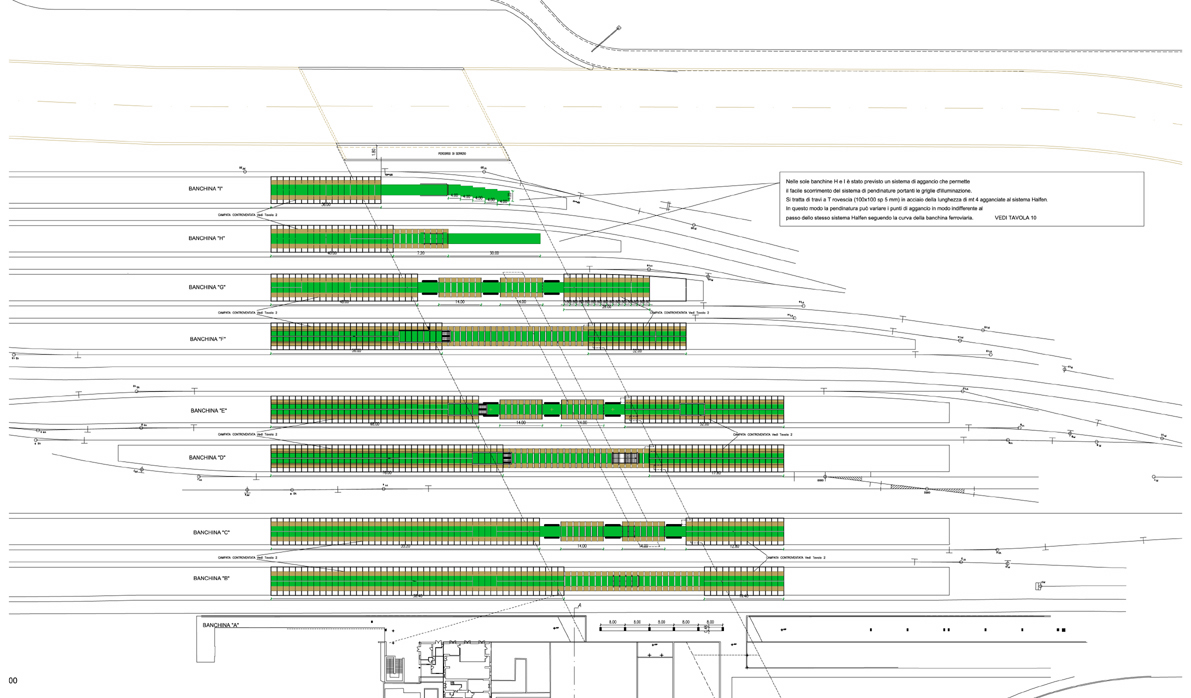 The Platform’s Canopy of Tiburtina Rail Station in Rome is an anticipation of the project station itself. Indeed its embossed structure has been replicated conceptually for the large cover station.