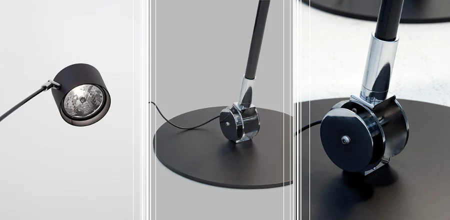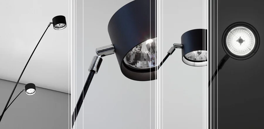 Floor halogen / led lamp – adjustable reflector for in and outdoor spaces. Stem inclination 0° / 10° / 20° – metal – fiberglass.
