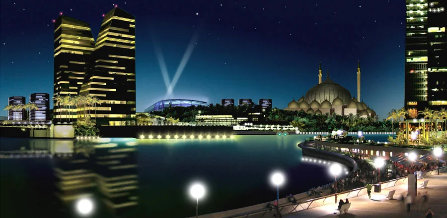 Lahore Sport City is a Master Plan and Architecture project for a mixed use development : it focus on sport and leisure services, combined with residential, service sector and commercial with strong liveable quality and low environmental impact. The Sport City had been developed for Buckatir Group, specialized in this sector. The surface development is about 25 million sqm of which 15 million sqm to realize. The project required 11 mosques, 21 schools, residence with different typologies (villa, tower, town houses) as well as a service sector and commercial Down Town. In addition there are therefore sport facilities, which includes 2 golf club, a soccer stadium, one cricket stadium, one for polo, one for basket and one swimming pool, plus healthcare centre and sport school. The whole masteplan was created to minimize the car use, thus it implements a smart public transport network and a walking distance between all services. The climate plays also an important role: in fact a network of artificial canals was created to mitigate the delta heat and the right use of geometry, to control the natural ventilation.