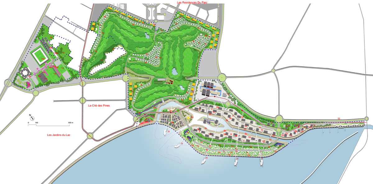 Sports cities are the model of development for sustain- able living. A private company, through an agreement with a large sports club (its size is measured above all its ability to generate culture, behavioral and economic profit related to the world of sport) made an offer to the Tunisian Government to re-develop part of its territory, introducing the concept of Quality Life Environment through a close relationship with sport. Tunis Sport City is the result of the design and coordination of numerous companies, responsible for its management, engineer- ing, infrastructures and sustainable design-mobility, energy, landscape and economics etc.The first phase of work began in April 2009. The Tunis Sports City, now under construction, consists of apartment buildings and several sports facilities. Built by the Bukhairt Group Construction, the project began in 2008 after being approved by the Tunisian President Zine El Abidine Ben Ali. The site is located in the Lac de Tunis, and an in- creasing number of multi-national companies have set up offices here. The site is bordered by two roads , the main the main Rue de Lac on one side and the motorway connecting Tunis with the suburbs on the other. The first part of the project, the “Cedar” residential project, will be completed in two-years period. The Tunis Sports City will encompass numerous entrainment facilities specializing in various sport discipline such as tennis, golf and tennis. The project also includes various sports academies, a 20.000 capacity football stadium, a swimming centre with an Olympic swimming pool, a thalassotherapy centre and an indoor service centre.